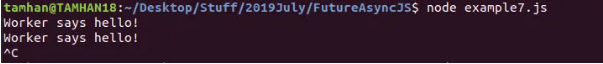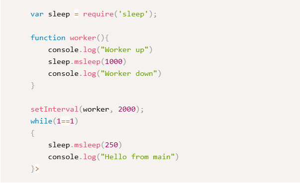 When you run this program, you’ll notice right away that the worker never runs. Something’s clearly wrong with how setInterval is behaving here.