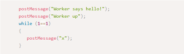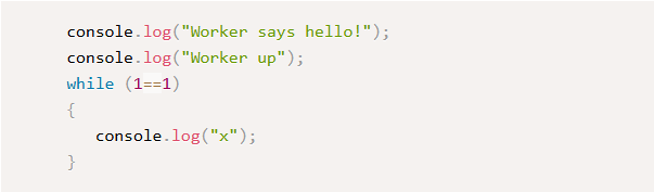 Message delivery usually depends on communication between the runtime and the rest of your OS. Unfortunately, our infinite loop blocks this process—so only one message appears before everything freezes up.
