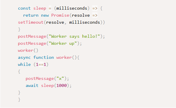 You can only use await inside an async function. That means we need to rewrite the worker: start by creating an async “wrapper” function, and let it handle the rest of the code’s logic.
