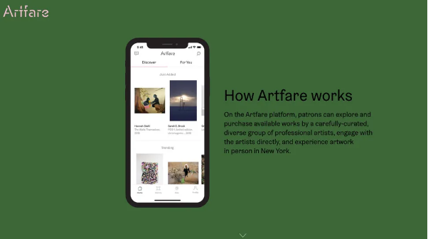 Launched in February 2019, Artfare reimagines the art fair model for local communities. It uses a mobile app, in-house curators, and local pop-up events to foster connections between artists and collectors—starting with New York’s vibrant art scene.