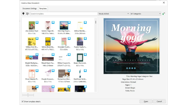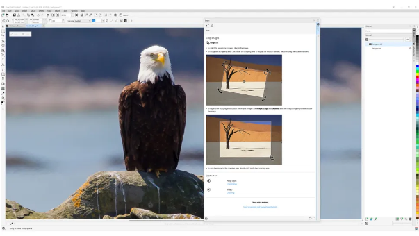 Beyond tutorials, CorelDRAW excels at guiding new users. By default, a right-side panel displays tips and explains every tool—down to basic functions like selecting or drawing shapes. For Adobe converts, the interface will feel familiar: you can switch to workspaces that mirror Illustrator and Photoshop (even darkening the background to match Adobe’s default look). Tools live on the left (with intuitive uses), and “dockers” (Corel’s term for adjustable panels) for colors and palettes sit on the right. These dockers stay open until you close or minimize them, at which point the document window expands—but the color panel (a full-height pillar) remains accessible at all times. The welcome screen also stays in the tab bar, so you can revisit it anytime to browse templates or tutorials. A tablet mode further improves usability on touchscreen devices.