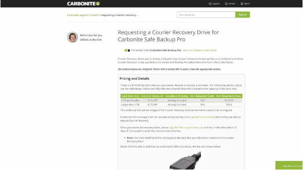 One of Carbonite’s most impressive features is its courier recovery service. If you need a physical copy of your data (e.g., for large-scale restores), you can order a secure hard drive with your backup, shipped directly to your U.S. address—for a small extra fee.