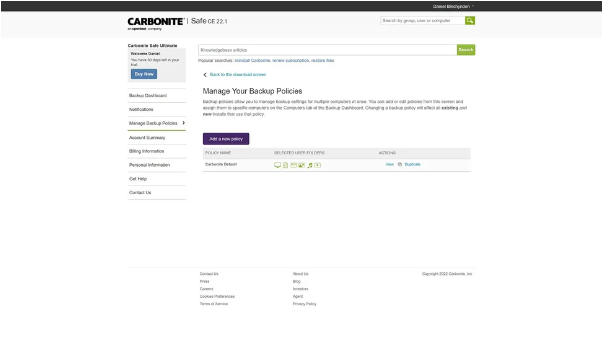 - Encryption: All backups are protected with AES 128-bit encryption—strong enough to block malicious third parties. Business plans take this further with AES 256-bit zero-knowledge encryption, which means even Carbonite’s team can’t access your files.