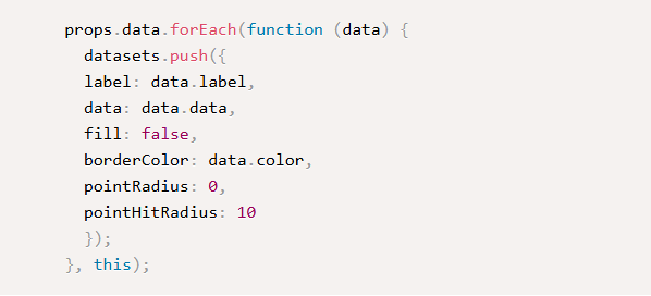Chart.js expects data in a specific format. Here, the ‘datasets’ array is a collection of points used to draw a line. We’ll use state to store all Chart.js configuration data and update it with datasets from the URL (which arrive in a different format).
