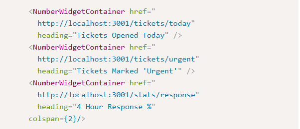 The NumberDisplay component works just like the widget we built – it renders text based solely on the props passed in. We can drop it anywhere we need a consistent way to show numerical data.