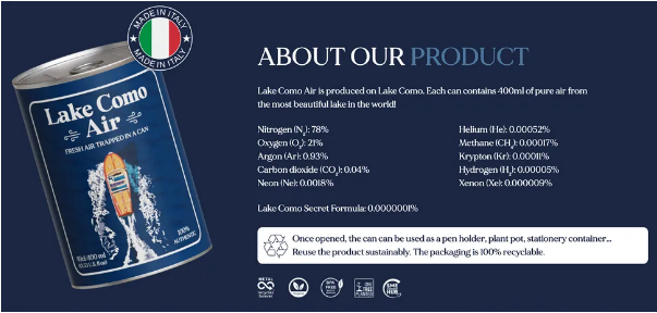 Admittedly, “canned air from a Italian lake” sounds pretty out there. But here’s the thing—the packaging? It’s so sleek, and it totally nails that luxury vibe Lake Como is famous for. Whether you think it’s a fun novelty or can’t believe someone actually had the guts to make it, it’s way more interesting than your average tourist trinket (looking at you, tiny “I Lake Como” keychains).