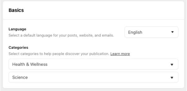Categories help readers find your work—so picking the right ones is non-negotiable. The catch? If your newsletter only fits one category, you might hit a snag. My bipolar-focused Substack, for example, fits perfectly in Health and Wellness, but there’s no other category that feels right.