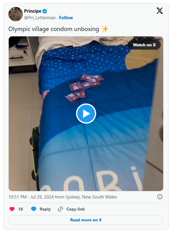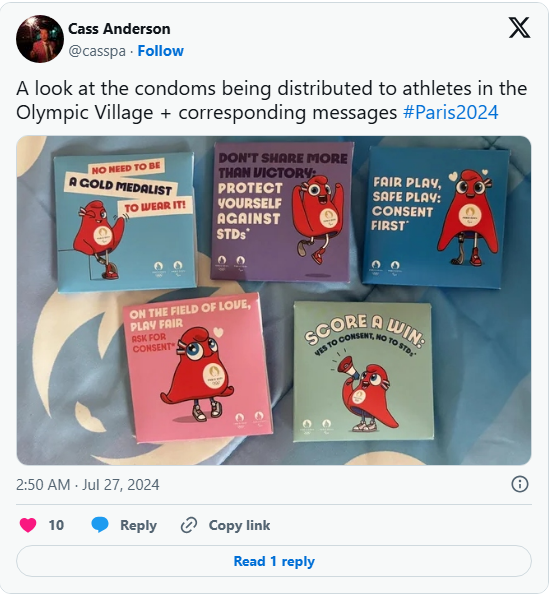 “The packaging is really spectacular!” Daniel Smith, the director of the Olympic Village, told People. He added that while condoms are handed out all around the Village, they’re also stocked in the “Athlete Resource Center”—a space he describes as “for athletes only, where they can take as many as they need.”