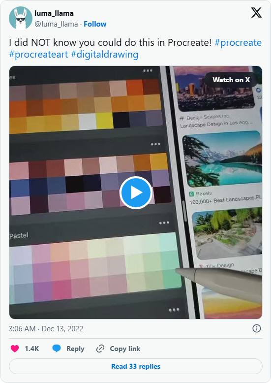 Recently, a Procreate user showed off a game-changing ability: turning any image into a full color palette directly in the app. The process couldn’t be simpler—just drag an image straight into Procreate’s palette browser, and boom, it instantly generates a custom color palette. It looks like pure magic, and Twitter users are losing their minds over it. (Want to give this a try yourself? Be sure to check out the best current iPad Pro deals.)